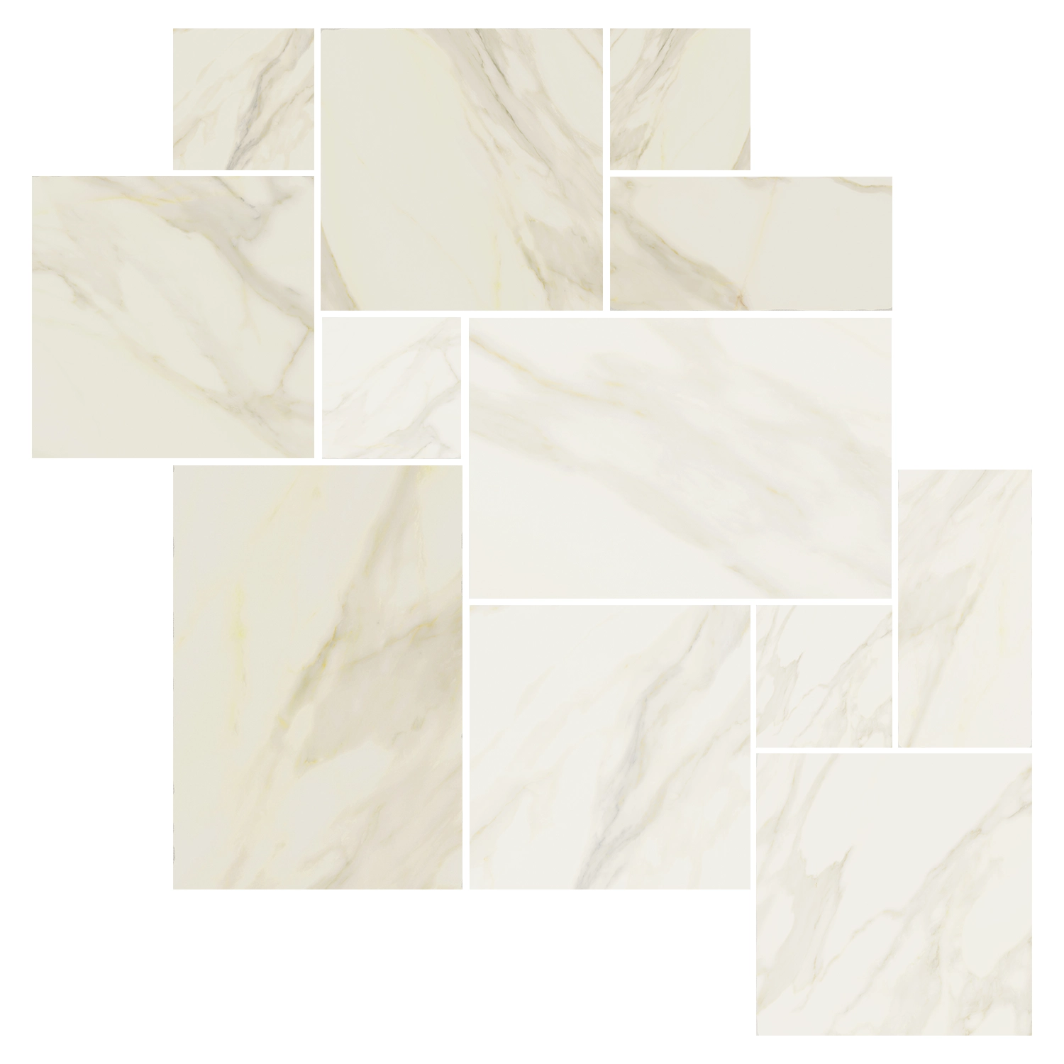 Gefertigt aus glasiertem Feinsteinzeug, überzeugt dieses Modulkit mit robuster Qualität, pflegeleichter Oberfläche und langlebiger Schönheit. Das Set enthält die Fliesenformate 20 x 20 cm, 20 x 40 cm, 40 x 40 cm und 40 x 60,8 cm und ermöglicht die Umsetzung der zwei gezeigten Verlegemuster. So lassen sich individuelle Bodenflächen mit harmonischer Struktur und natürlicher Wirkung gestalten. Wer ein hochwertiges Bodenfliesen-Set in Calacatta Optik sucht, das klassische Marmorästhetik, moderne Funktionalität und die besondere Wirkung eines römischen Verbandes vereint, trifft mit Opus Calacatta Modulare 39 die perfekte Wahl für anspruchsvolle Raumgestaltung.
