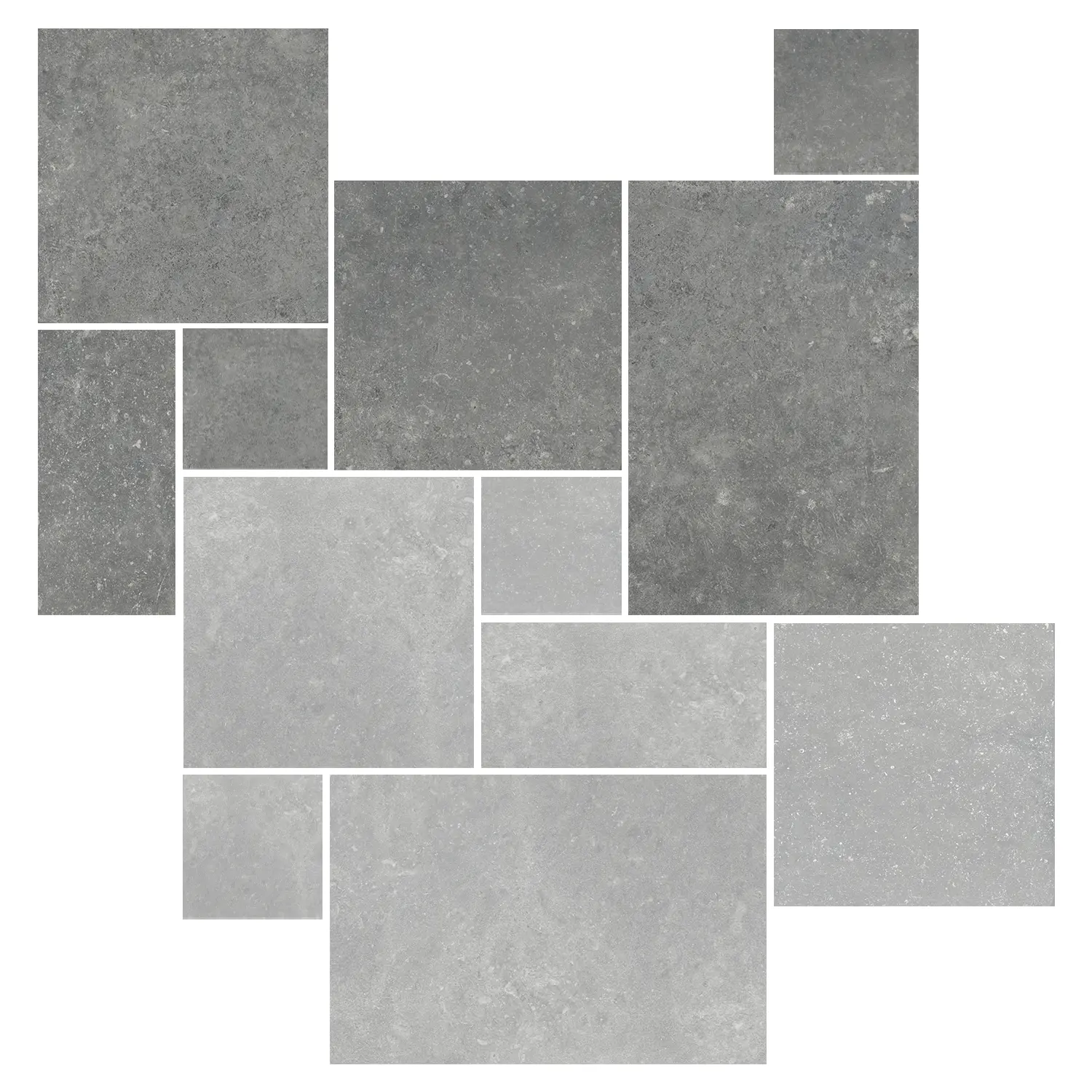 Gefertigt aus glasiertem Feinsteinzeug, überzeugt das Modulkit durch seine robuste, pflegeleichte und langlebige Qualität. Enthalten sind die Fliesenformate 20 x 20 cm, 20 x 40 cm, 40 x 40 cm und 40 x 60,8 cm, mit denen sich die zwei gezeigten Verlegemuster stilvoll umsetzen lassen. Gerade der Römische Verband sorgt für ein abwechslungsreiches, natürlich wirkendes Gesamtbild mit exklusivem Charakter. Wer graue Bodenfliesen in Steinoptik sucht, die Funktionalität, Eleganz und flexible Gestaltungsmöglichkeiten vereinen, trifft mit Opus Sky Modulare 39 die ideale Wahl. Dieses Feinsteinzeug Bodenfliesen-Set steht für geschmackvolle Raumgestaltung, hohe Alltagstauglichkeit und eine zeitlose Optik, die dauerhaft begeistert.