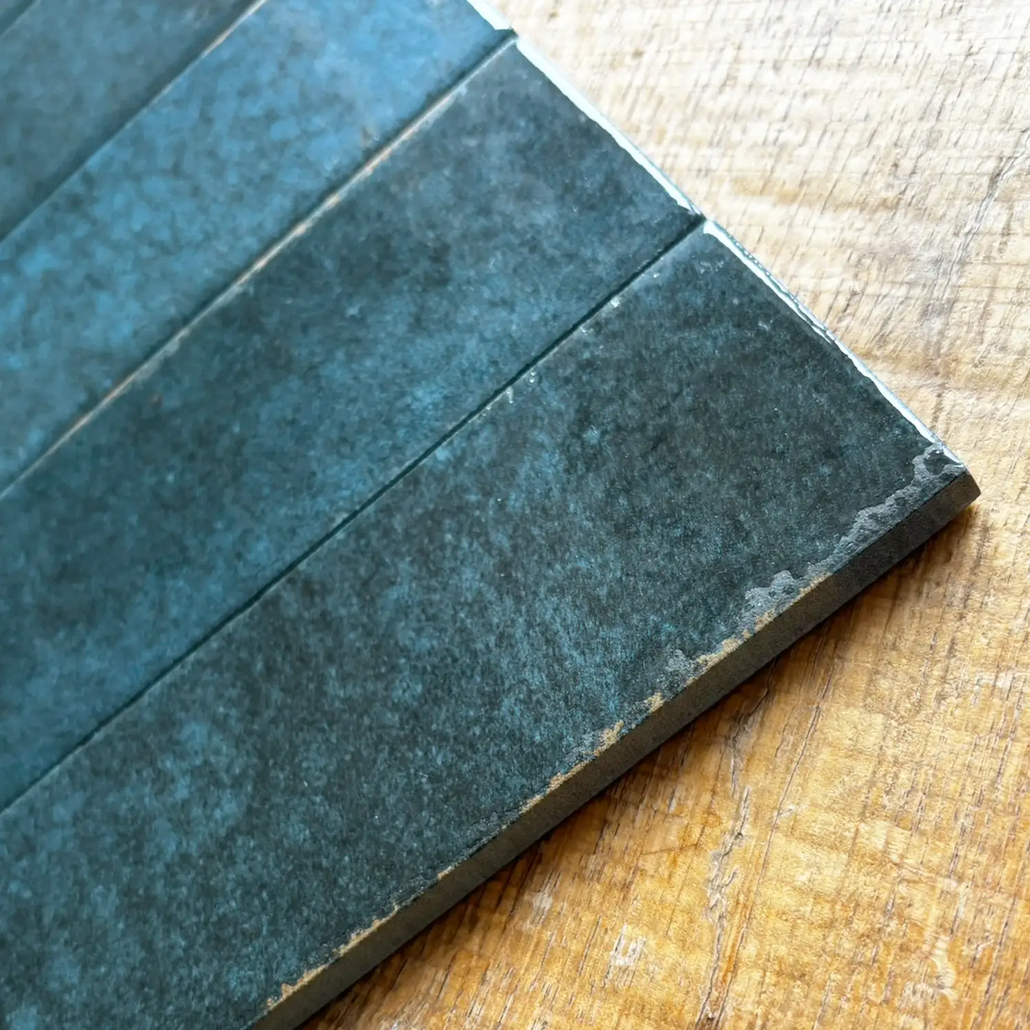 An den Kantenbereichen können bewusst nur Teilglasuren sichtbar sein. Dieses design- und produktionsbedingte Merkmal gehört zum Look der Serie und unterstreicht den rustikalen Landhaus-Charakter. Auch die unglasierten Bereiche sind nicht saugend, da die Fliesen aus dicht gesintertem Feinsteinzeug bestehen.