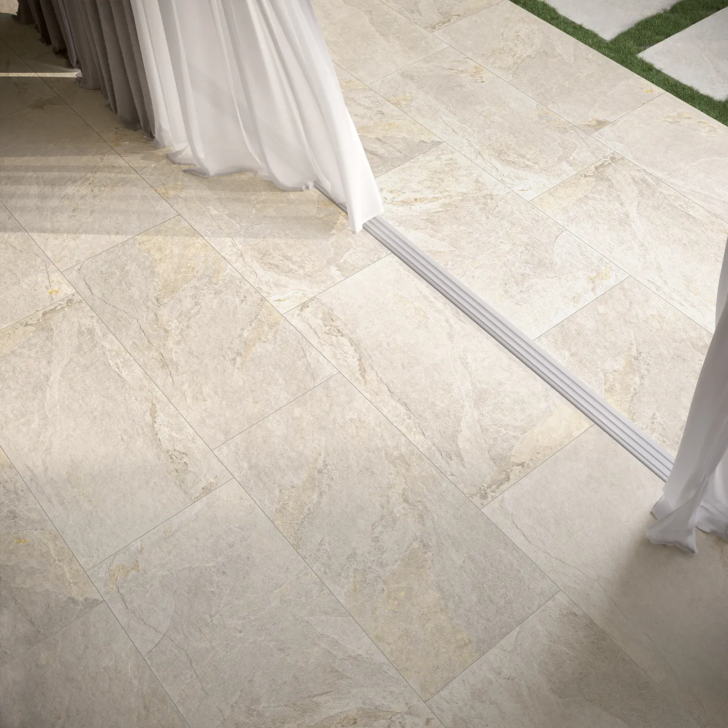 Für maximale Gestaltungsfreiheit lässt sich Canyon Ivory vielseitig verlegen: auf Stelzlagern, im Splittbett, auf Sand oder auf Rasen. So passt sie sowohl zu Neubauprojekten als auch zur Renovierung bestehender Außenflächen. Besonders stimmig wird das Gesamtbild durch die passende Indoor-Kollektion: Damit schaffen Sie eine elegante, durchgängige Optik zwischen Innen- und Außenbereichen und gestalten Räume, die wirken, als wäre jeder Blick nach draußen ein zu betrachtender Sonnenuntergang.
