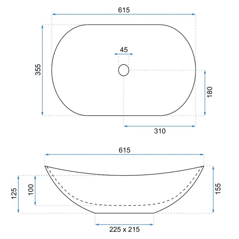 Produktinformation SlimThin Ellipse Aufsatzbecken 61 x 35 x 15 cm