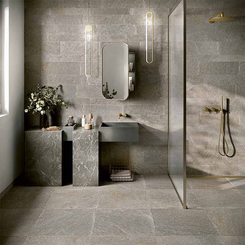 Entdecken Sie die vielseitige Eleganz der Steinoptik-Bodenfliese Quarzite Grigio in 15 x 60 cm. Diese Fliese bringt die natürliche Schönheit und Kraft von Felsen, die über Jahrtausende geformt wurden, direkt in Ihr Zuhause. Dank fortschrittlicher Keramiktechnologie werden die charakteristischen Unregelmäßigkeiten von Quarzit, entstanden aus einer Mischung von Quarz und Kieselerde, perfekt nachgebildet.