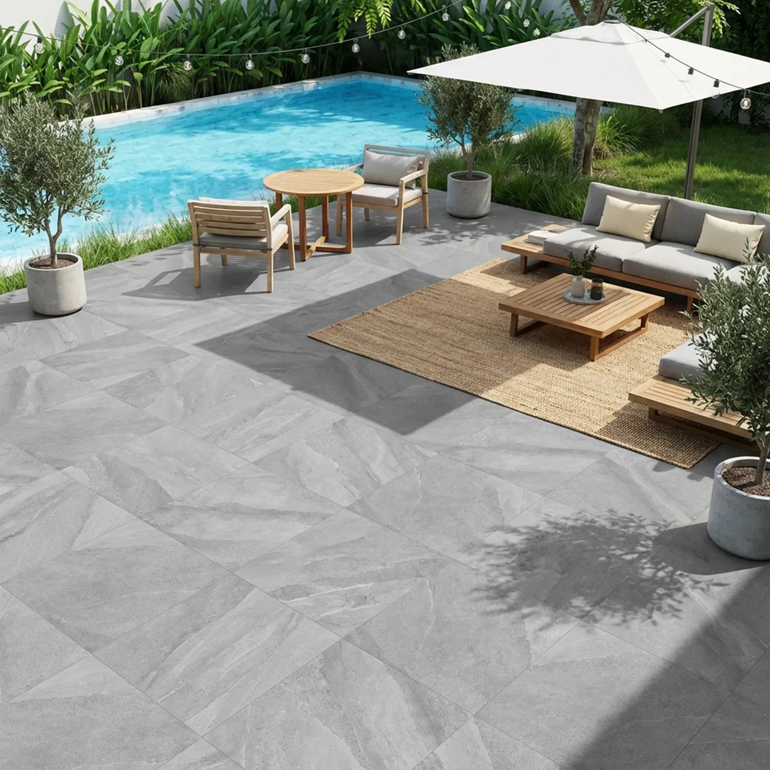 Entdecken Sie die Terrassenplatte Alaska der Casa Collection – eine stilvolle und langlebige Lösung für Ihren Außenbereich. Diese hochwertige Platte in zeitloser Schieferoptik wird aus 20 mm starkem Feinsteinzeug gefertigt und überzeugt durch ihre Robustheit und Pflegeleichtigkeit. Die elegante Farbe Grey verleiht Ihrem Garten, Ihrer Terrasse oder Ihrem Balkon eine moderne und zugleich natürliche Ausstrahlung.