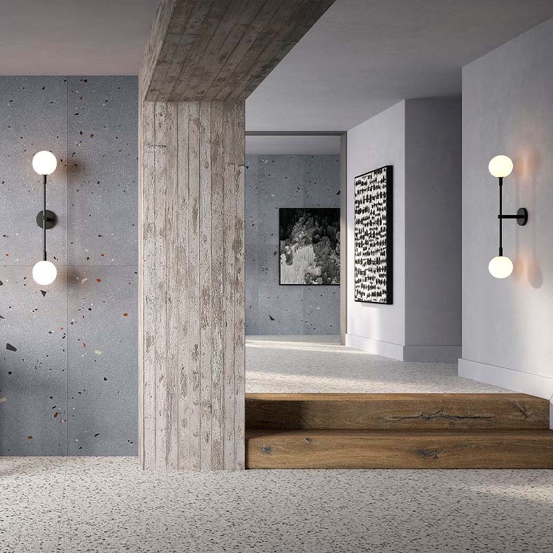 Die Kollektion Kado des renommierten italienischen Herstellers Ascot bietet vielfältige Gestaltungsmöglichkeiten: Besonders reizvoll ist die Kombination der ausdrucksstarken Terrazzo-Fliesen „Flakes“ mit den zurückhaltenderen Betonoptik-Fliesen „Cement“ derselben Serie. So entstehen spannende Kontraste und individuelle Designs, die jedem Raum einen unverwechselbaren Charakter verleihen.