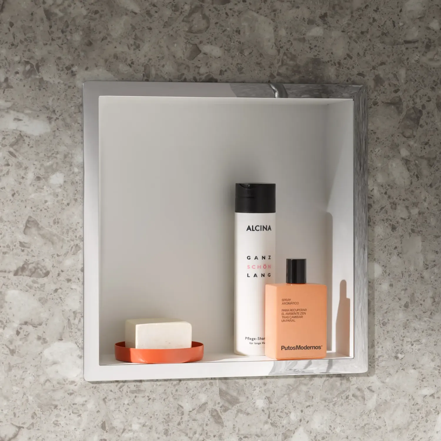 In der Wand integriert, maximiert die Nische den Stauraum, ohne den Duschbereich einzuengen.