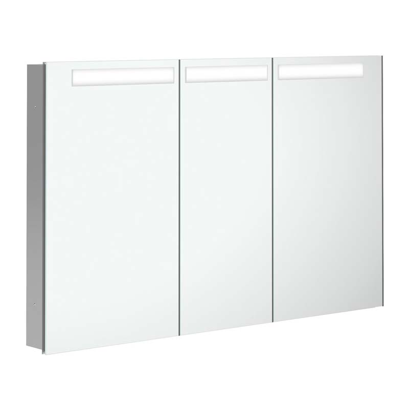 Der My View-In Einbau-Spiegelschrank mit Beleuchtung ist die perfekte Wahl für ein modernes und funktionales Badezimmerdesign. Erhältlich in den Breiten 1200, und 1300 mm, bietet dieser elegante Spiegelschrank mit einer Höhe von 747 mm und einer Tiefe von 107 mm eine platzsparende Lösung, die sich nahtlos in Ihre Wand integrieren lässt. Die drei Doppelspiegeltüren aus hochwertigem Spiegelglas sorgen für ein stilvolles Erscheinungsbild und optimale Sichtverhältnisse.