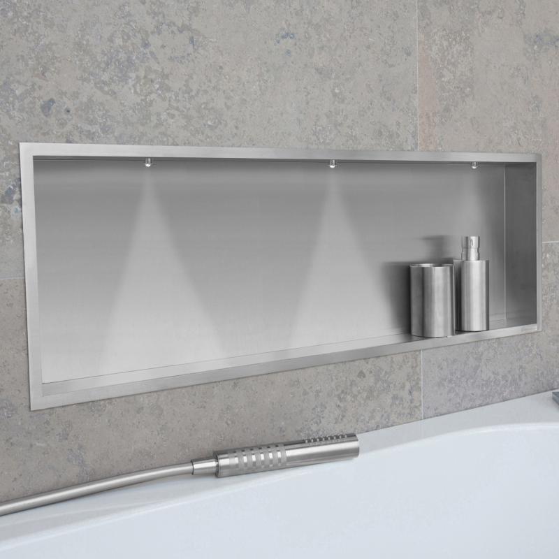 Für Trocken- und Nassbau geeignet. Dieses Produkt ist aus hochwertigem Edelstahl gefertigt. Shampoos und Duschgels sowie andere diverse Badaccessoires lassen sich so raumsparend unterbringen. Die Wandnische läßt sich einfach und schnell ohne aufwändige Abdichtungs- und Befliesungsarbeiten einbauen.| Hersteller: | ESS Easy Drain |