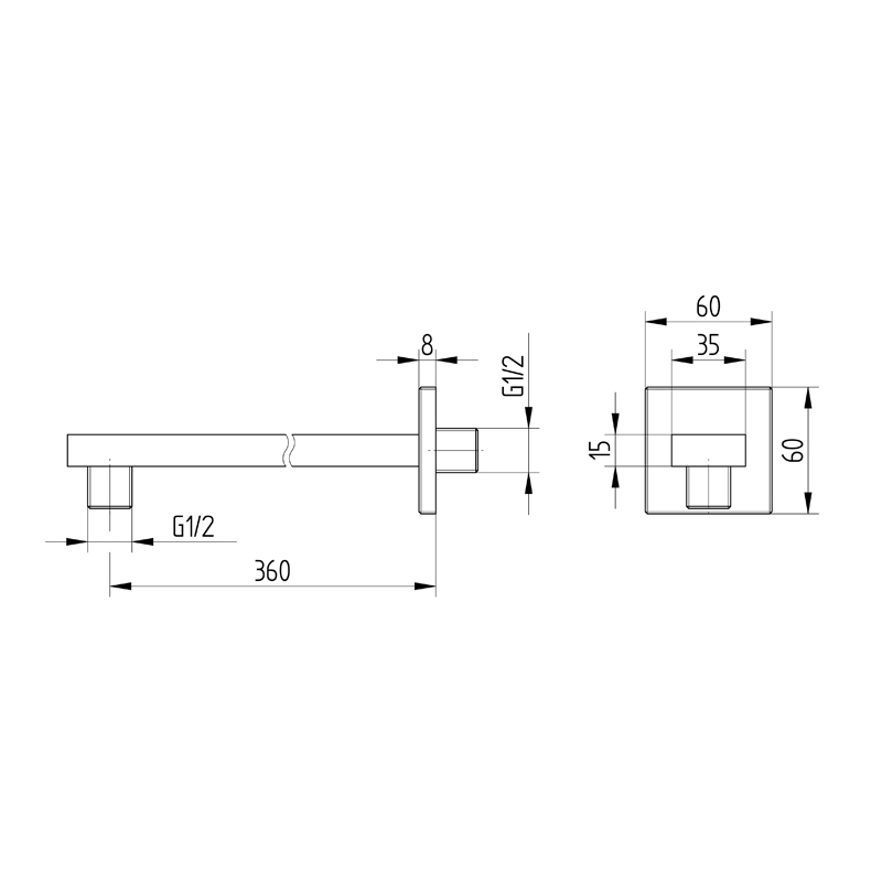 Produktinformation Avenarius eckig stabil Brausearm Wandmontage 360 mm chrom