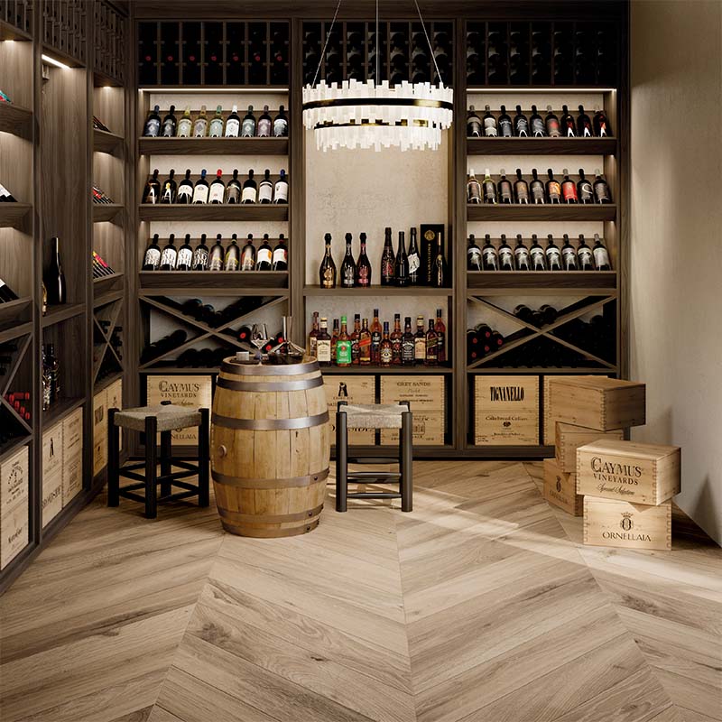 Im XL-Format 15 x 85 cm setzt die Holzoptik-Fliese einen ruhigen, zugleich ausdrucksstarken Takt. Fein nuancierte Maserungen und Poren verleihen authentische Holzanmutung, während das präzise Chevron-Format die grafische Klarheit unterstreicht. Innerhalb der Serie sind verschiedene Holzoptiken erhältlich, sodass Farbspiel und Textur perfekt auf Materialmix, Möblierung und Licht abgestimmt werden können.