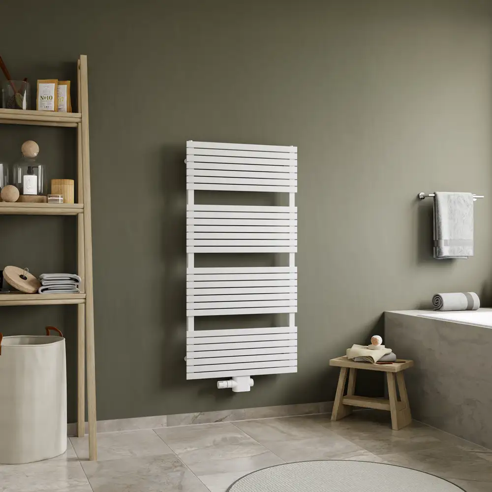 Der Corpotherma Filigro Scala Badheizkörper mit Mittenanschluss NA = 50 mm ist ein rechts-links geschlossener Paneelheizkörper