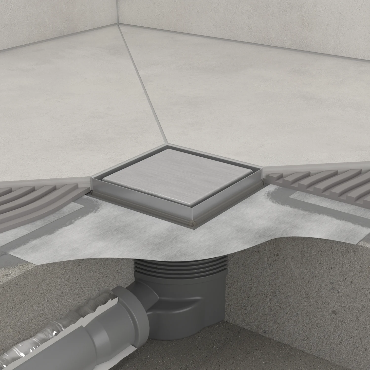 Der Punktablauf verfügt über eine Sekundärentwässerung. Falls sich Feuchtigkeit unterhalb des Fliesenbelags sammelt, kann sie kontrolliert abgeleitet werden – ein Plus an Sicherheit im Duschbereich.