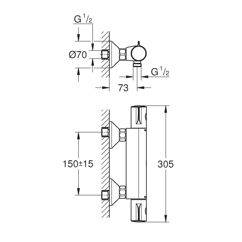 Produktinformation Grohe Grohtherm 800 Thermostat-Brausebatterie, DN 15