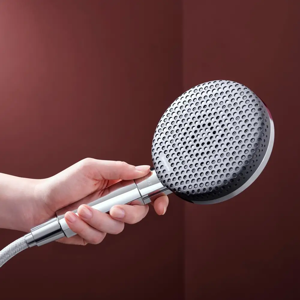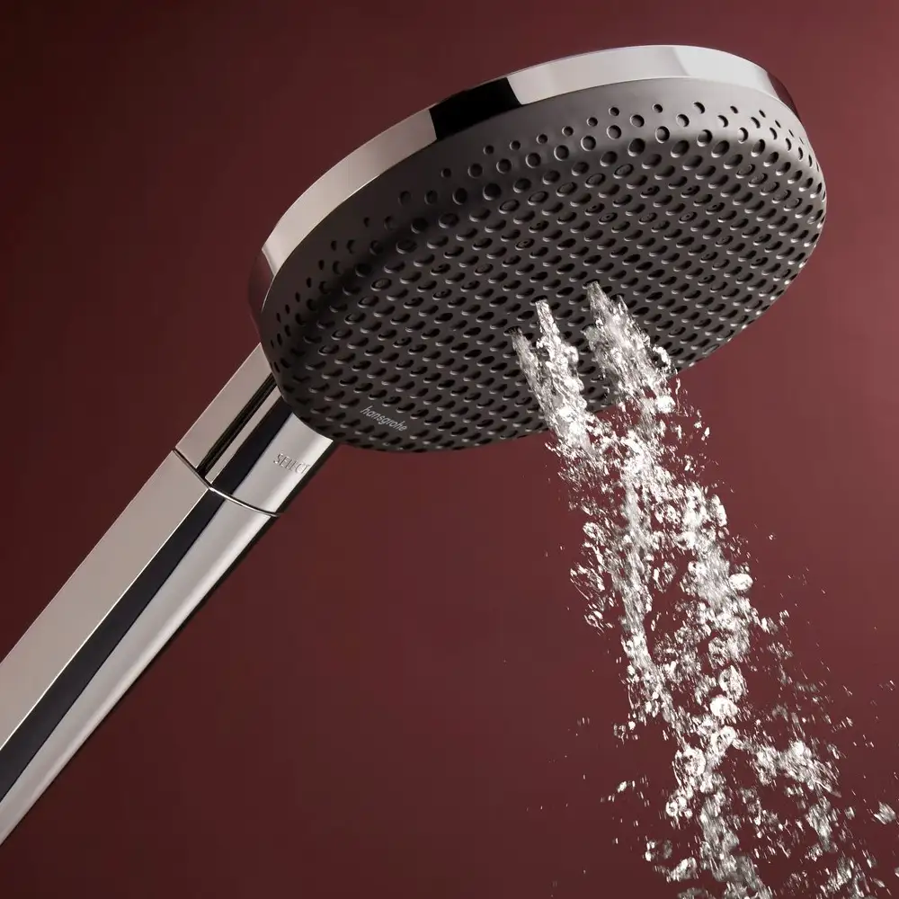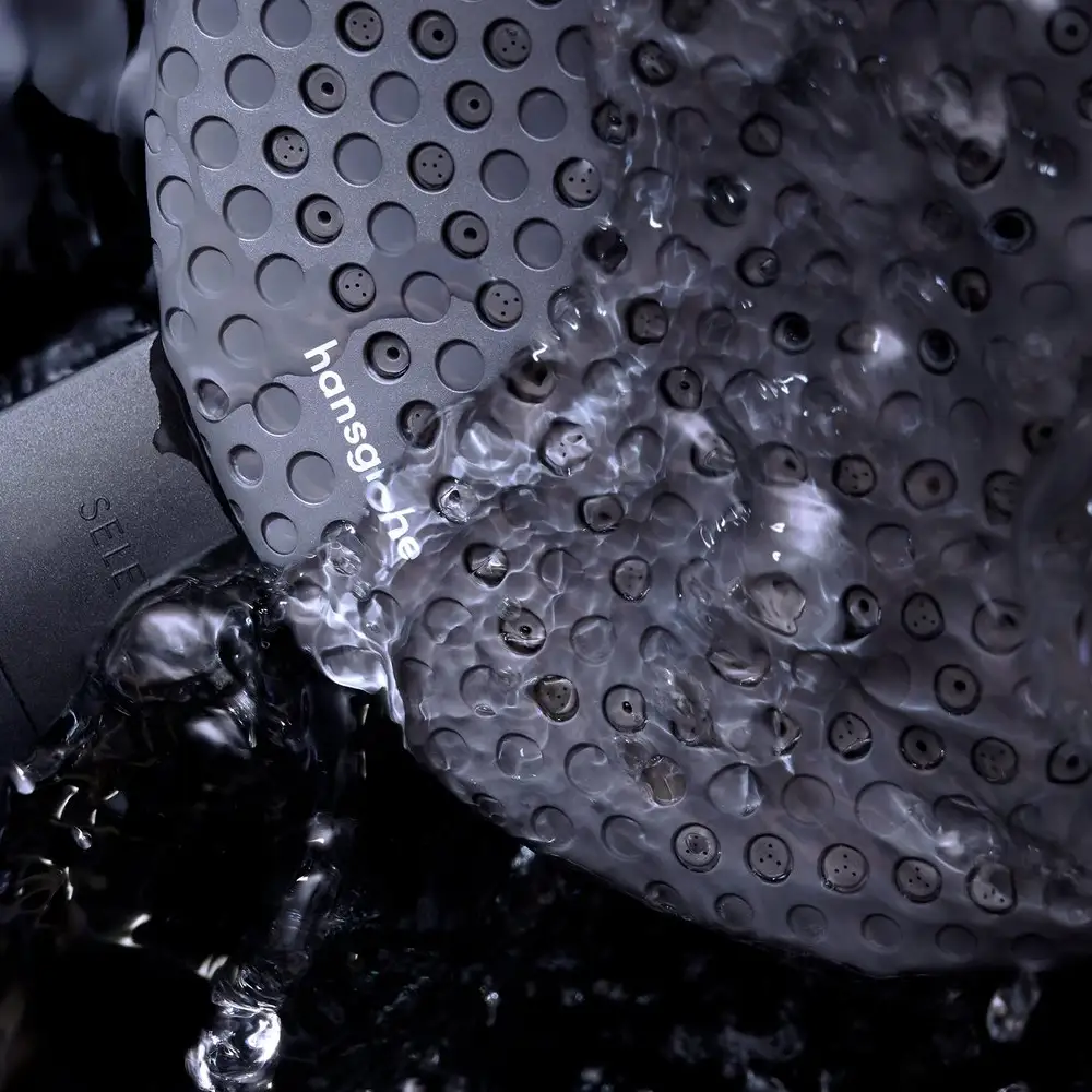Wer Wasser sparen möchte, wählt die Variante mit EcoSmart. Hier begrenzt der Durchflussregler auf 8 l/min (mit möglichen Toleranzen bis −20 %) und erfüllt die EU‑Taxonomie-Vorgabe von maximal 8 l/min (DNSH). Bei 3 bar beträgt die maximale Durchflussmenge 7,1 l/min, die Funktion setzt ab 6,4 l/min ein; der RainAir Strahl liegt bei 3 bar ebenfalls bei 7,1 l/min. So genießen Sie die gleiche Vielfalt aus RainAir, PowderRain und Massagestrahl mit spürbar reduzierter Wasser- und Energiebilanz – ohne auf Komfort und das hochwertige Graphit-Design zu verzichten.