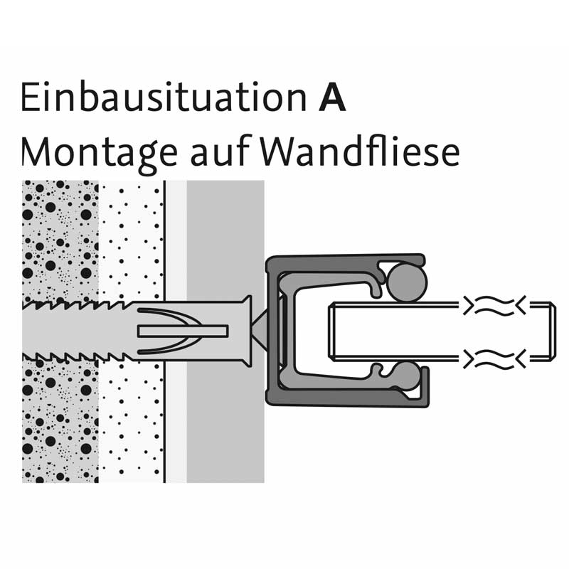 Bei Einbausituation B + C (s. Bilder) verringert sich das angegebene Wanneneinbau- bzw. Fliesenmaß (Glas Mitte Fuge) um die entsprechende Einbautiefe des Profils bauseits.