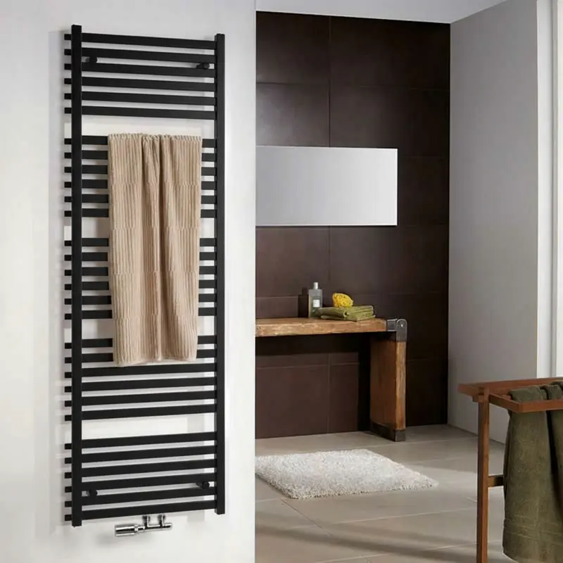 Mit der Entscheidung für den HSK Line Aero Badheizkörper bleibt die Flexibilität der Heizungsart erhalten. Der Designheizkörper im schlanken, markant eckigen Röhrenformat kann für verschiedene Heizungsarten verwendet werden. Gerade bei nachträglichen Veränderungen der Immobilie zeigen sich die Vorteile dieser mehrfachen Verwendungsmöglichkeit. Wird nur ein Teil des Objekts im Warmwasserbetrieb genutzt und kommen weitere Betriebsarten wie Elektroheizkörper oder Mischbetrieb zum Einsatz, schafft der HSK Line Aero Badheizkörper ein einheitliches Erscheinungsbild in der Badezimmergestaltung.Der HSK Line Aero Badheizkörper ist ein klassischer Badheizkörper und Handtuchtrockner, der durch seine eckigen Heizrohre mit der klaren Formgebung moderner Badezimmergestaltung ideal harmoniert. Die Heizrohre sind in Gruppen angeordnet. Durch diese Aufteilung ergeben sich Freiräume, die viel Platz für Badetücher und Handtücher schaffen. Zugleich lockern diese Segmente das dichte Sprossendesign des 6,8 cm bis 7,8 cm tiefen Heizkörpers optisch auf und geben den Blick auf die individuelle Wandgestaltung frei.