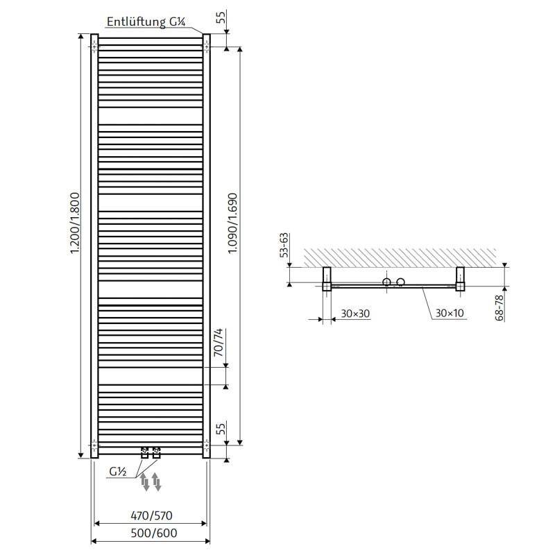 Produktinformation HSK Line Aero Badheizkörper 600 x 1800 mm