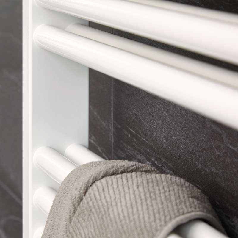 Die Klarheit des Designs ist für den HSK Line Two Badheizkörper zugleich ein Statement. Der leicht zu installierende Handtuchheizkörper konzentriert sich auf die Leistung der horizontal angeordneten Heizreihen, die durch ihre Doppelrohre die Heizfläche erhöhen. Wärme wird durch den Anschluss im reinen Warmwasserbetrieb zugeführt, um schnell und effektiv eine angenehme Umgebungstemperatur in jedem Badezimmer zu erzeugen.Der HSK Line Two Badheizkörper ist ein Handtuchheizkörper mit hoher Heizkraft. Bei unterschiedlicher Länge ist der Korpus jeweils 60 cm breit und eignet sich damit ideal für schmale Wandflächen, wie sie in vielen Badezimmer zu finden sind. Der praktische Mittelanschluß am unteren Heizrohr unterstreicht die gleichmäßige und zeitlose Linienführung.