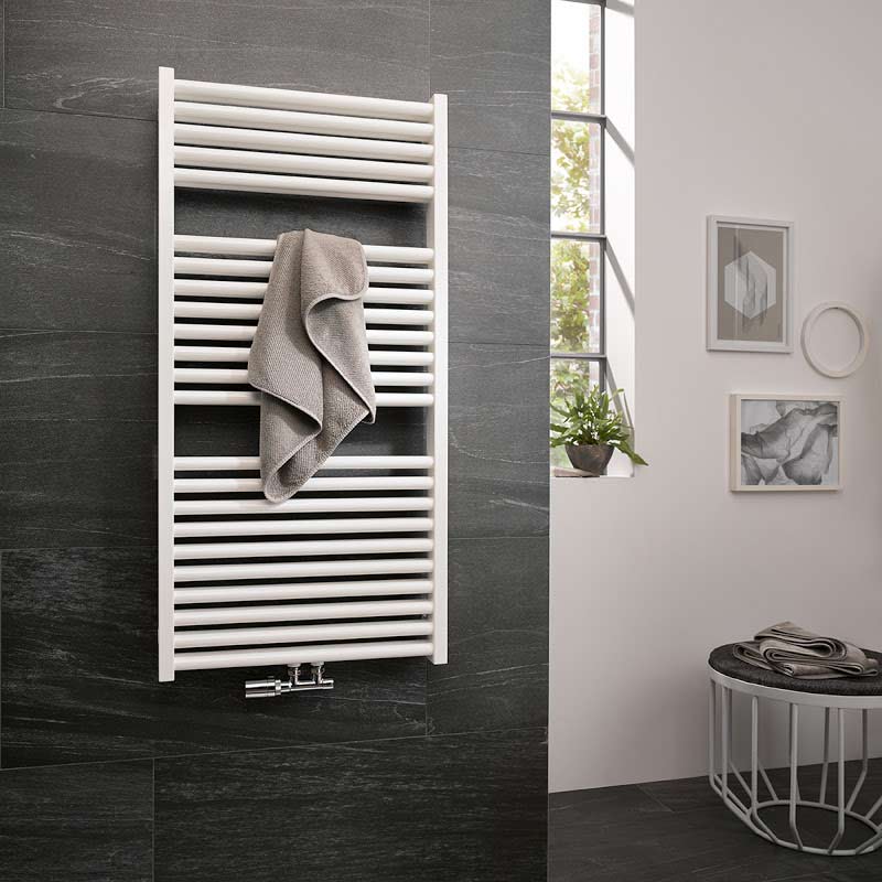 Zu seinem optisch überzeugenden Design hat der HSK Line Two Badheizkörper eine Reihe weiterer Vorteile im Angebot. Die Handtuchheizung mit dem Stahlkorpus weist verschiedene Leistungsvarianten auf. Diese ergeben Sie je nach der Vorlauftemperatur Ihrer Heizungsanlage. Die starke Leistung des kompakten Heizkörpers aus der Serie Line Two von HSK entsteht bei allen Ausführungen durch die intelligente Doppelanordnung der Heizrohre. Sie führt zu einer Steigerung der Wärme abstrahlenden Fläche, ohne die kompakte Form zu verändern.Zusätzlich stehen verschiedene Farbausführungen zur Auswahl. Neben dem klassischen Weiß veredelt der HSK Line Two Badheizkörper in weiteren dezenten Nuancen den stimmigen Gesamteindruck von Wandgestaltung, Badkeramik und multifunktionalem Heizelement. Anschlussgarnitur und Thermostat werden gesondert nach den individuellen Voraussetzungen des Badezimmers ausgewählt.