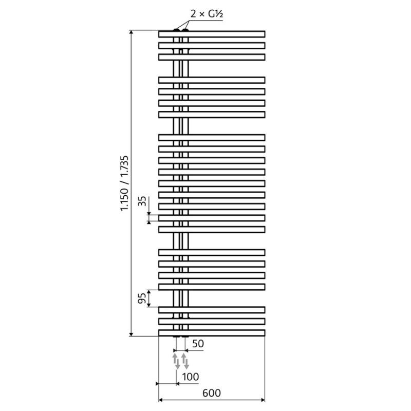Lieferumfang:Badheizkörper, Entlüftungstopfen und Befestigungsmaterial, ohne Anschlußgarnitur