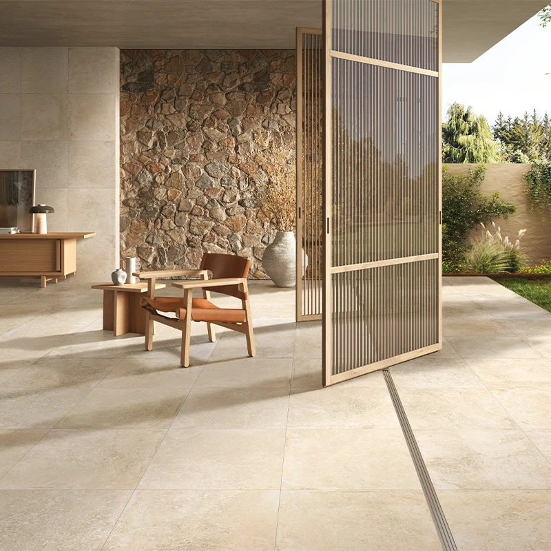 Für den Innenbereich sorgt die R10 Oberfläche für eine angemessene Rutschfestigkeit, während die R11 Oberfläche speziell für den Outdoor-Bereich konzipiert wurde, um auch unter nassen Bedingungen optimale Sicherheit zu gewährleisten. Die robuste Beschaffenheit der Fliesen macht sie ideal für Terrassen, Balkone und andere Außenräume, wo Langlebigkeit und Widerstandsfähigkeit gegenüber den Elementen gefragt sind.