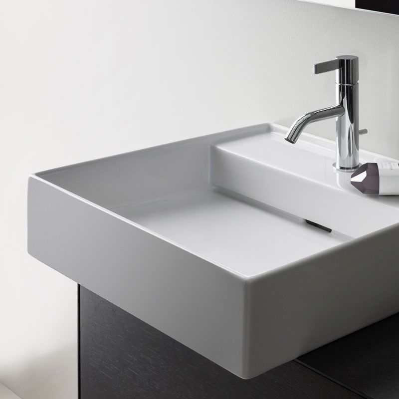 Ideal für zeitgemäße Bäder oder Gäste-Wäschestationen, wo Ästhetik auf Funktion trifft. Passt zu Waschtischplatten jedweder Art.
