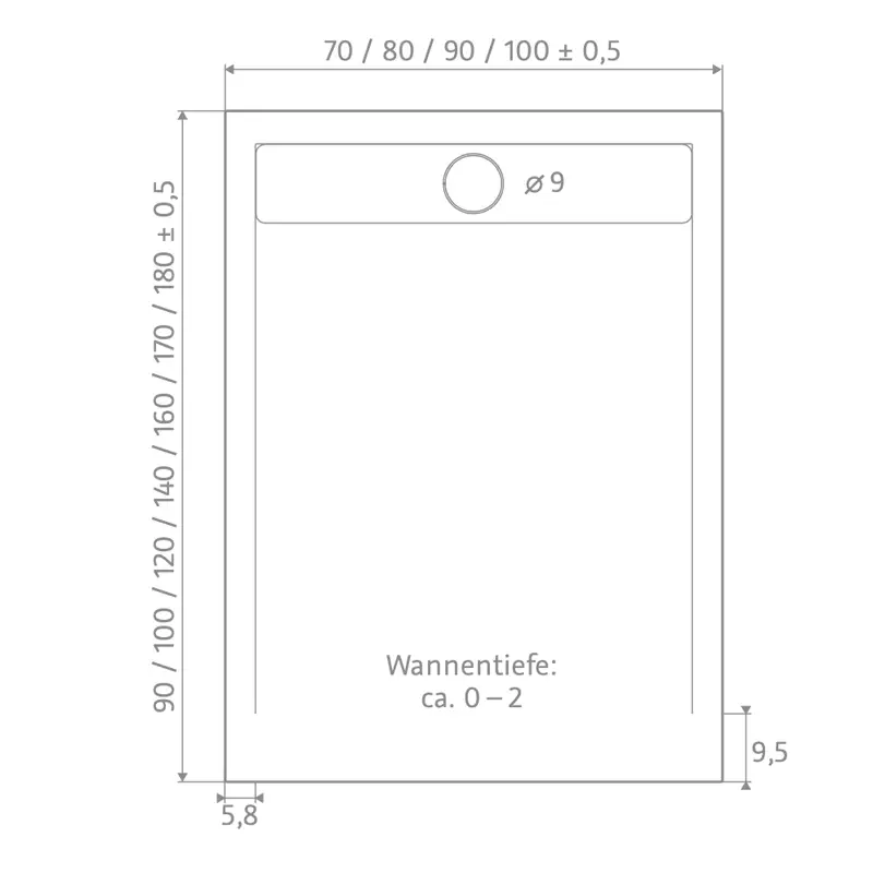 | Ablaufloch | 90 mm |