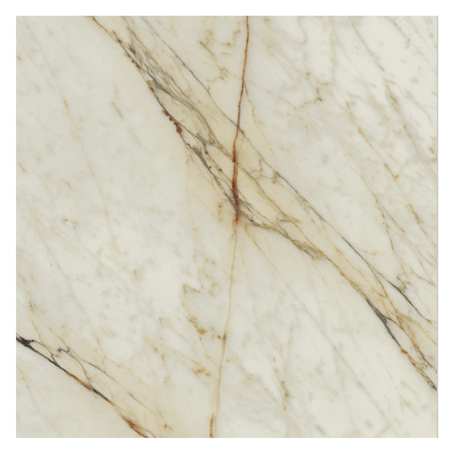 Calacatta Dorato ist ein Marmor von monumental wirkendem Charakter: Ein kraftvolles, unregelmäßiges Muster durchzieht die Oberfläche mit breiten Netzstrukturen und markanten aderartigen Akzenten. So entstehen ausdrucksstarke Flächen, die Böden – und bei passenden Anwendungen auch Wände – in szenische Kulissen verwandeln. Der Farbton erinnert an die Opulenz traditioneller Architektur und interpretiert sie zeitgemäß: elegant, präsent und zugleich kombinierfreudig.