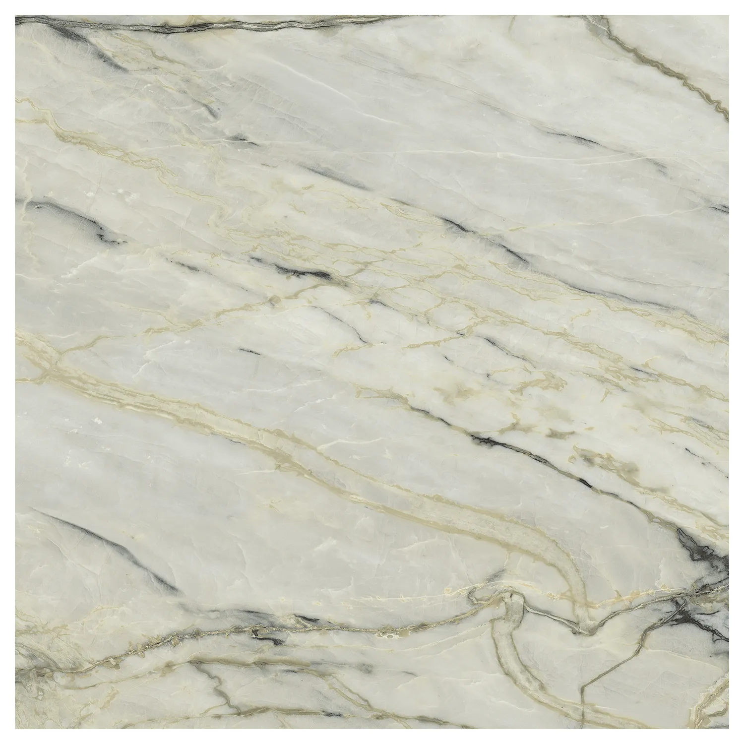 Verde Orientale zeigt eine helle, edle Basis, die von grün-grauer Aderung durchzogen wird. Feine Ockertöne wärmen die Oberfläche subtil auf und sorgen für Tiefe, ohne die Leichtigkeit des Designs zu verlieren. Das dynamische Muster erinnert an die natürliche Heterogenität von echtem Marmor und macht jede Fläche zu einem lebendigen Gestaltungselement, das je nach Lichteinfall immer wieder anders wirkt.