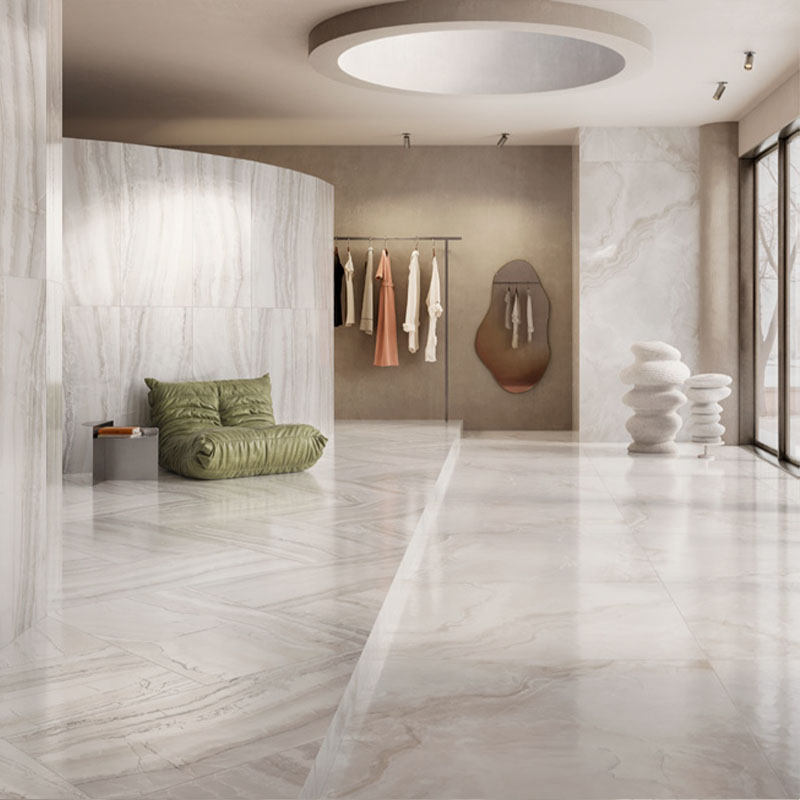 Entdecken Sie die exquisite Onyx-Optik Fliese Venus Crystal Cross von Ascot, die mit ihrer beeindruckenden Marmoroptik und einer großzügigen Größe von 120 x 120 cm jeden Raum in ein elegantes Ambiente verwandelt. Diese Bodenfliesen aus hochwertigem Feinsteinzeug sind nicht nur kalibriert und besitzen eine Materialstärke von 10 mm, sondern zeichnen sich auch durch ihre seidenmatte Oberfläche aus, die einen Hauch von Luxus vermittelt.