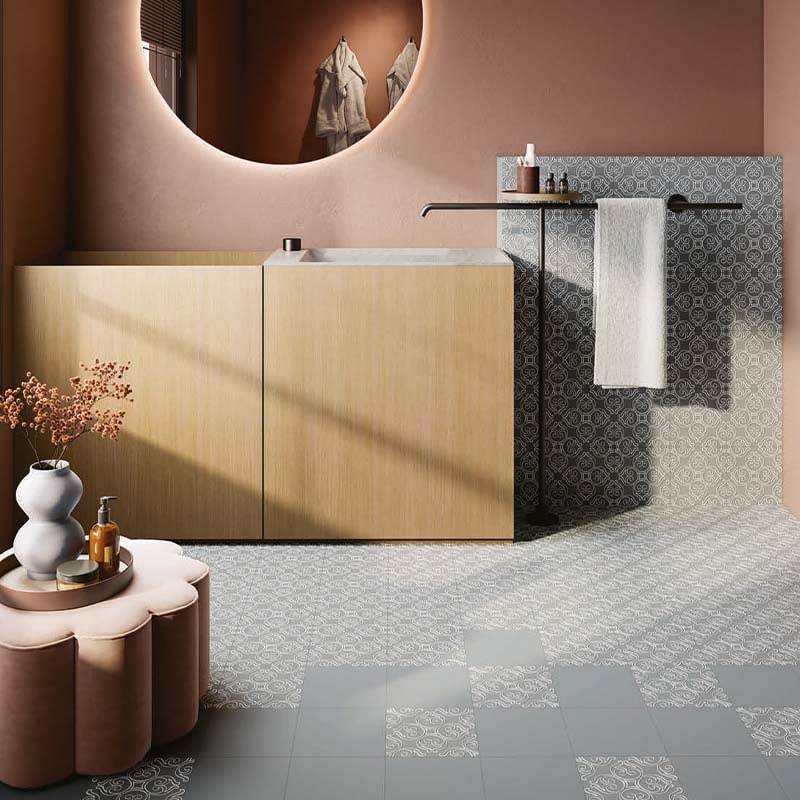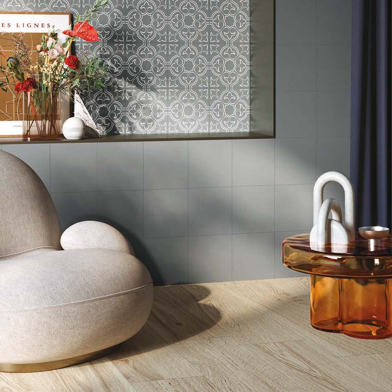 Ob im Wohnzimmer, in der Küche oder im Badezimmer – die Retro Fliese Twist Sky setzt stilvolle Akzente und schafft eine frische Basis für Ihre Raumgestaltung. Kombinieren Sie sie mit den Ornamentmustern der Twist Patchwork Fliesen und verwandeln Sie jeden Raum in ein individuelles Kunstwerk voller Charakter und Raffinesse. Das sanfte Kreideblau bringt Ruhe und Leichtigkeit in Ihr Zuhause und lässt sich vielseitig einsetzen.