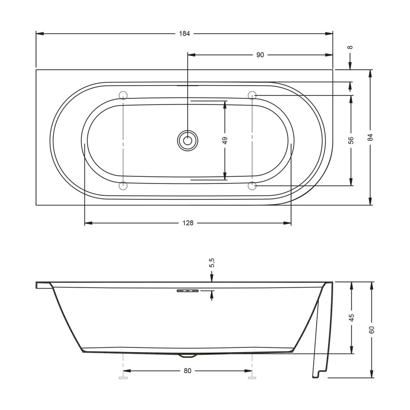 | Lieferumfang: | Badewanne, inklusive Fußset, Siphon und Pop-up |