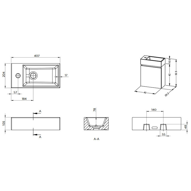 Riho Spring Rise – Gäste WC SetKeramik Handwaschbecken B: 40 T: 20 H: 12 cm