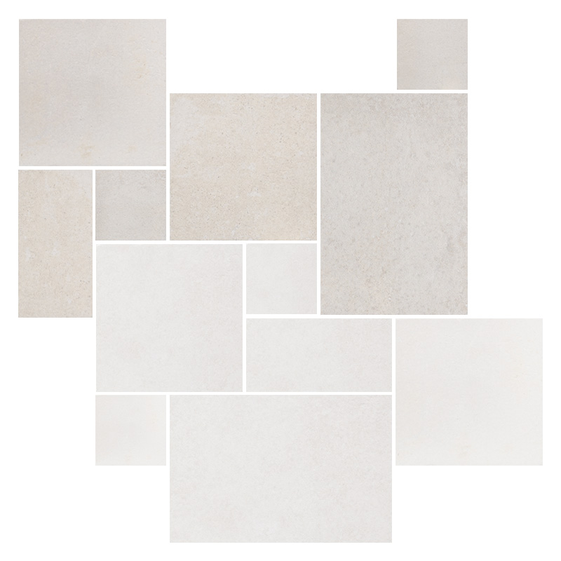 Der Artikel Römischer Verband CIR Italica Terra Salina Mod 39 ist für den gezeigten Modulbelag geeignet, ein Karton enthält die folgenden Fliesenformate: 20 x 40 cm = 1 Stück, 40 x 40 cm = 2 Stück, 20 x 20 cm = 2 Stück, 40 x 60,8 cm = 1 Stück. Kartoninhalt gesamt = 0,723 qm, die Modulverlegung wird mit einer Mindestfuge von 4-5 mm empfohlen.