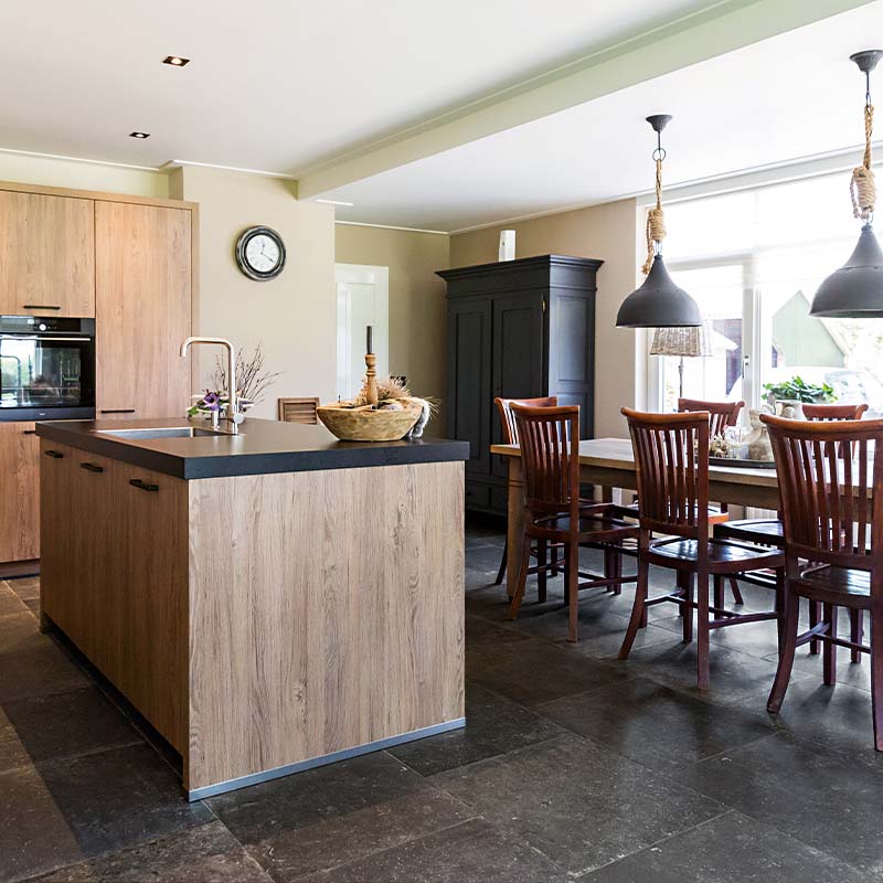 Das dunkle Schwarz der Stone Pit Thunder Fliese bietet eine dramatische Basis, die sich hervorragend als Kontrast zu helleren Möbelstücken oder Accessoires eignet. Die authentische Steinstruktur auf der Oberfläche verleiht jedem Raum Tiefe und Charakter und schafft ein sinnliches Erlebnis sowohl für das Auge als auch für den Tastsinn.