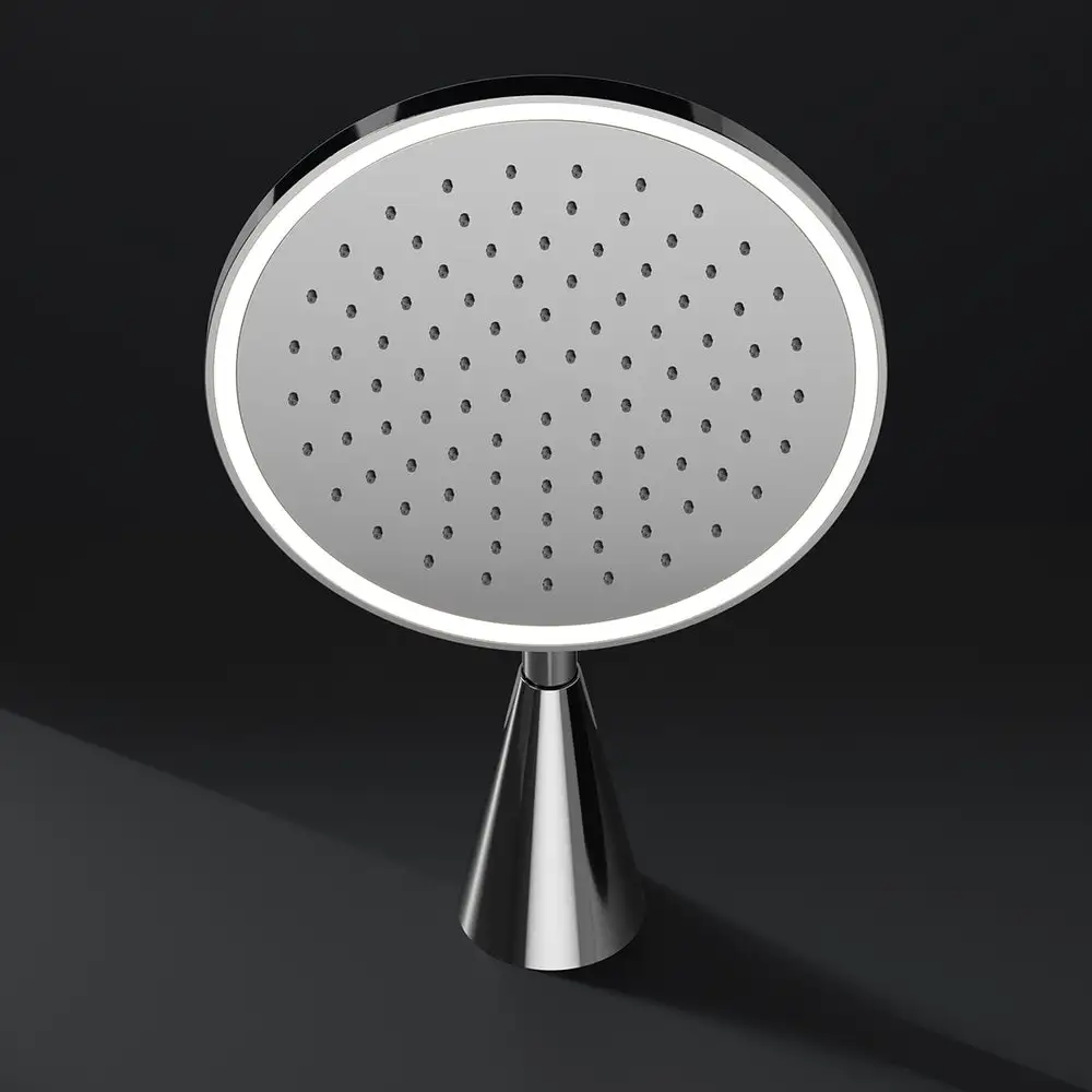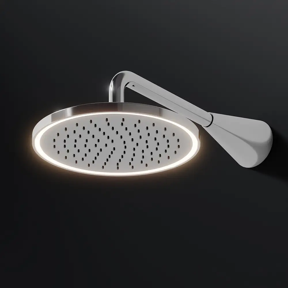 Die Steinberg Serie 310 Regenbrause mit LED-Beleuchtung verbindet elegantes, rundes Design mit stimmungsvoller Atmosphäre und moderner Effizienz.