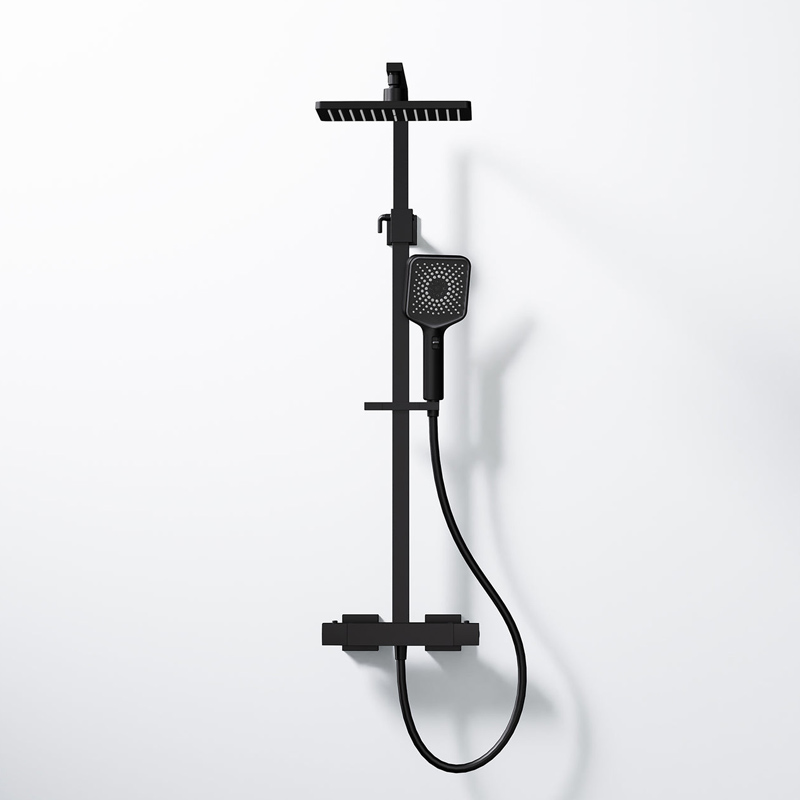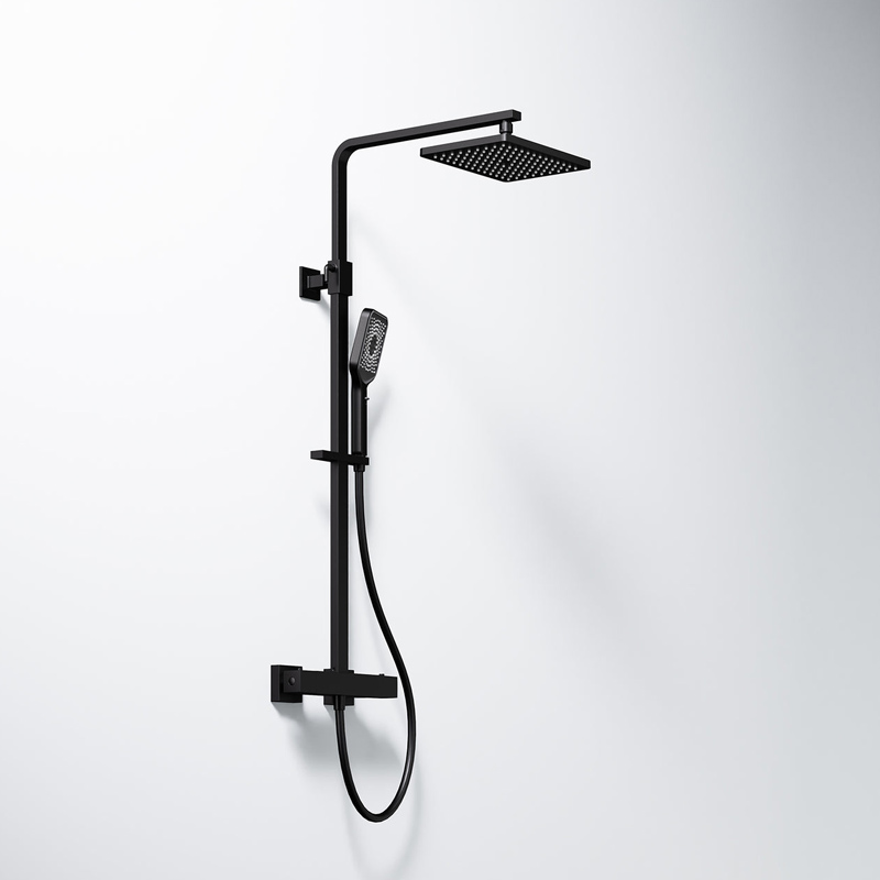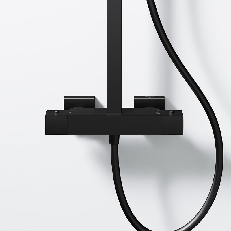 Gefertigt aus robustem Messing und erhältlich in den stilvollen Farben Chrom, Schwarz Matt und Brushed Gold, fügt sich das Duschsystem harmonisch in jedes moderne Badambiente ein. Die klassische, manuelle Bedienung sorgt für eine intuitive Handhabung, während die integrierte Mengenregulierung eine präzise Steuerung des Wasserflusses ermöglicht. Dank der hochwertigen Thermostatarmatur genießen Sie stets eine konstante Wassertemperatur – für ein sicheres und angenehmes Duscherlebnis.