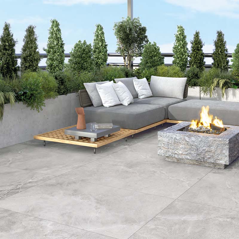 Verleihen Sie Ihrem Außenbereich einen Hauch von Luxus und Natürlichkeit mit der Miscela Ash R11 Feinsteinzeug Bodenfliese in Steinoptik. Robustheit trifft auf Ästhetik – für ein stilvolles Ambiente unter freiem Himmel.