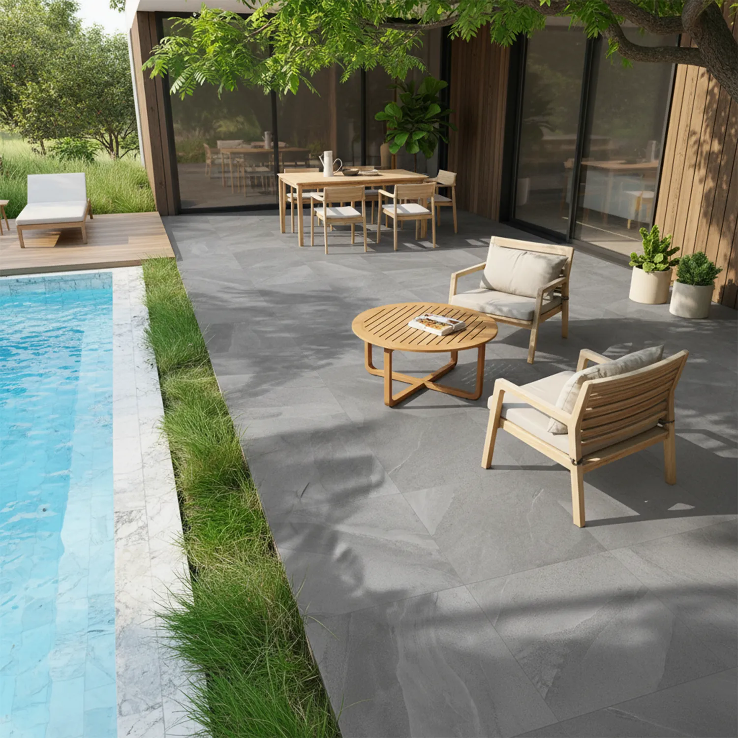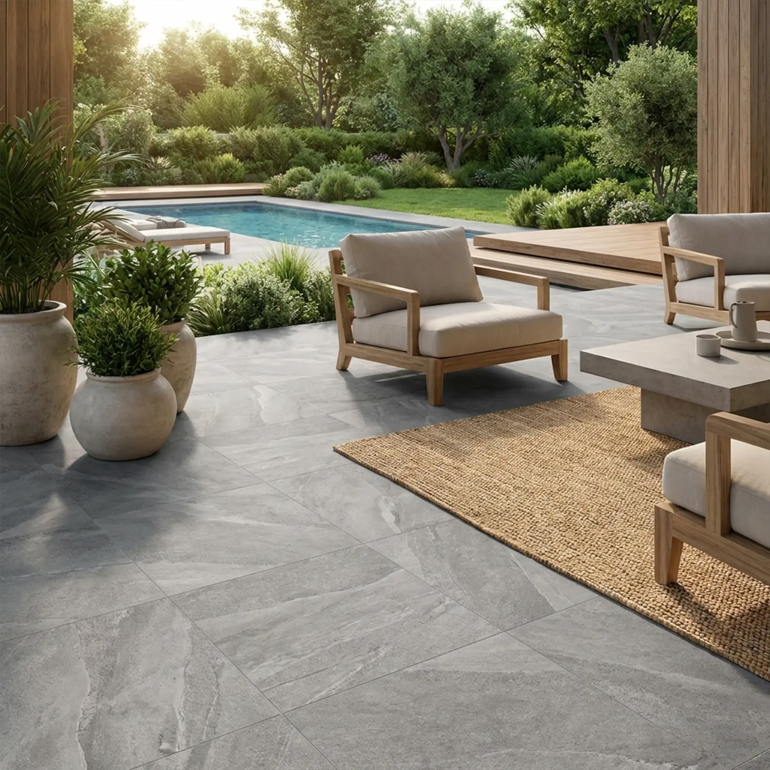 Entdecken Sie die Terrassenplatte Alaska der Casa Collection – eine stilvolle und langlebige Lösung für Ihren Außenbereich. Diese hochwertige Platte in zeitloser Schieferoptik wird aus 20 mm starkem Feinsteinzeug gefertigt und überzeugt durch ihre Robustheit und Pflegeleichtigkeit. Die elegante Farbe Grey verleiht Ihrem Garten, Ihrer Terrasse oder Ihrem Balkon eine moderne und zugleich natürliche Ausstrahlung.