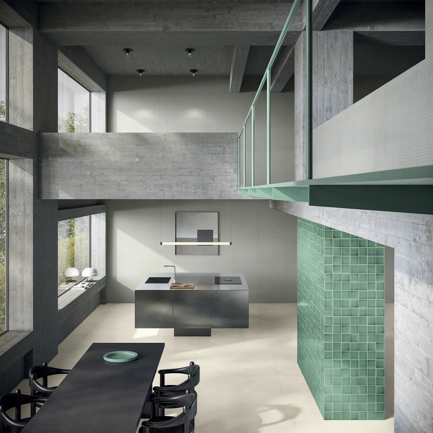 Serenissima steht für Qualität, durchdachte Designs und langlebige Materialien. Die Oberfläche der Dekorfliese ist pflegeleicht und unempfindlich, wodurch sie sich hervorragend für den täglichen Einsatz eignet und auch in stark frequentierten Bereichen überzeugt. In Verbindung mit natürlichen Hölzern, hellen Einrichtungselementen oder weiteren Fliesen in Zementoptik ergibt sich ein stimmiges Gesamtbild mit klarer, zeitgenössischer Ausstrahlung. Die Zementoptik Dekor Geometria Micro Verde 60 x 120 cm ist damit die ideale Wahl für alle, die eine designorientierte Wandfliese mit grafischem Charakter, frischem Grünakzent und urbaner Eleganz suchen.